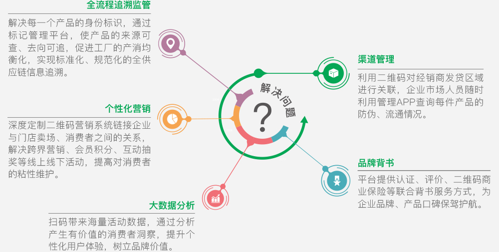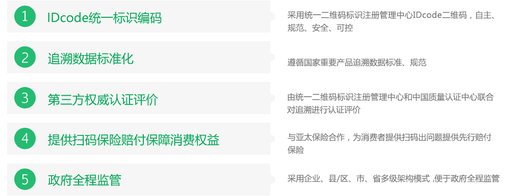 在国办发(2015)95号文指导下,在统一标识代码注册管理中心(UTC)、中关村工信二维码技术研究院(ZIIOT)的大力支持,由河北广联信息技术有限公司研发而成。根据六大类产品的特点及产线流程的差异,我们进行了深入调研和行业细分,分别推出了六大追溯平台:农产品追溯公共服务平台、食品追溯公共服务平台、药品追溯公共服务平台、生产资料追溯公共服务平台、危险品追溯公共服务平台和特种设备追溯公共服务平台。